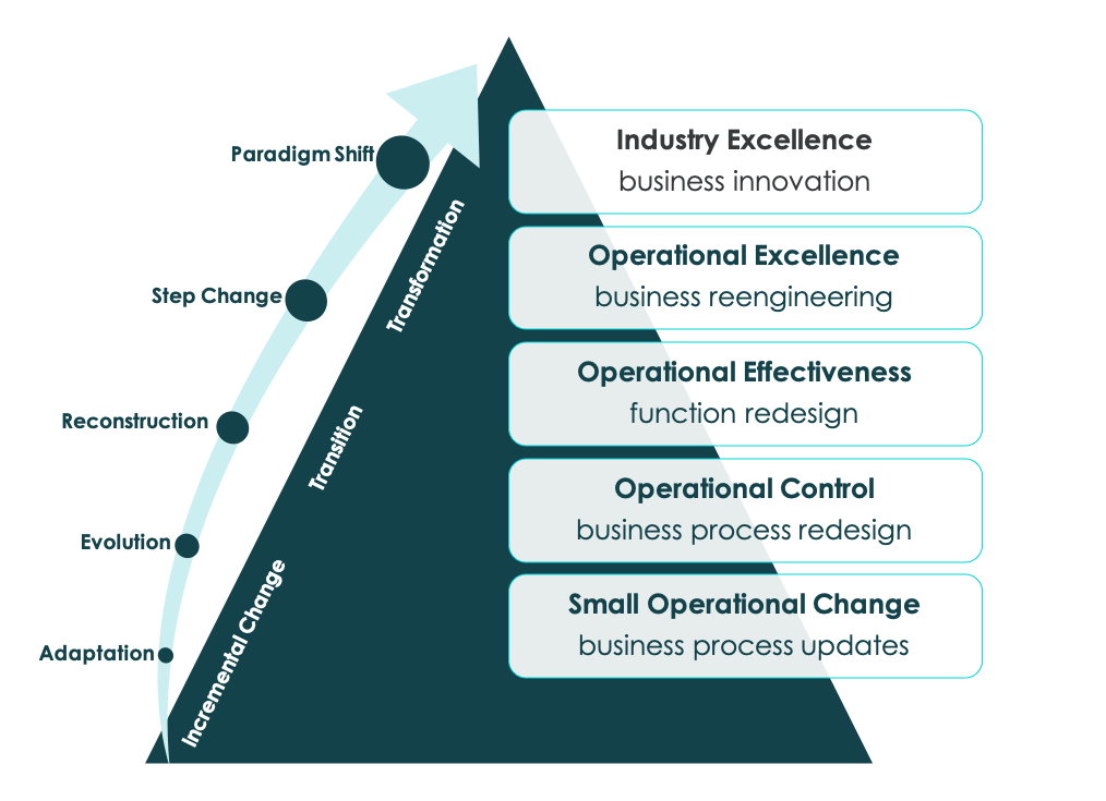 Help our clients gain insight into the level of the improvement opportunities, from adaptations to paradigm shifts